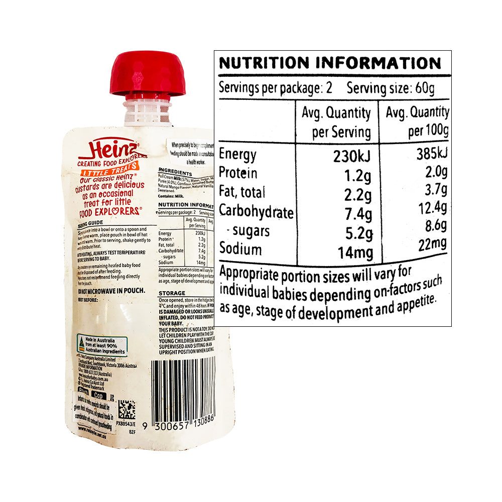- Heinz Little Treats Custard 8+ Months 120g is the perfect first dessert to delight your little one’s taste buds!