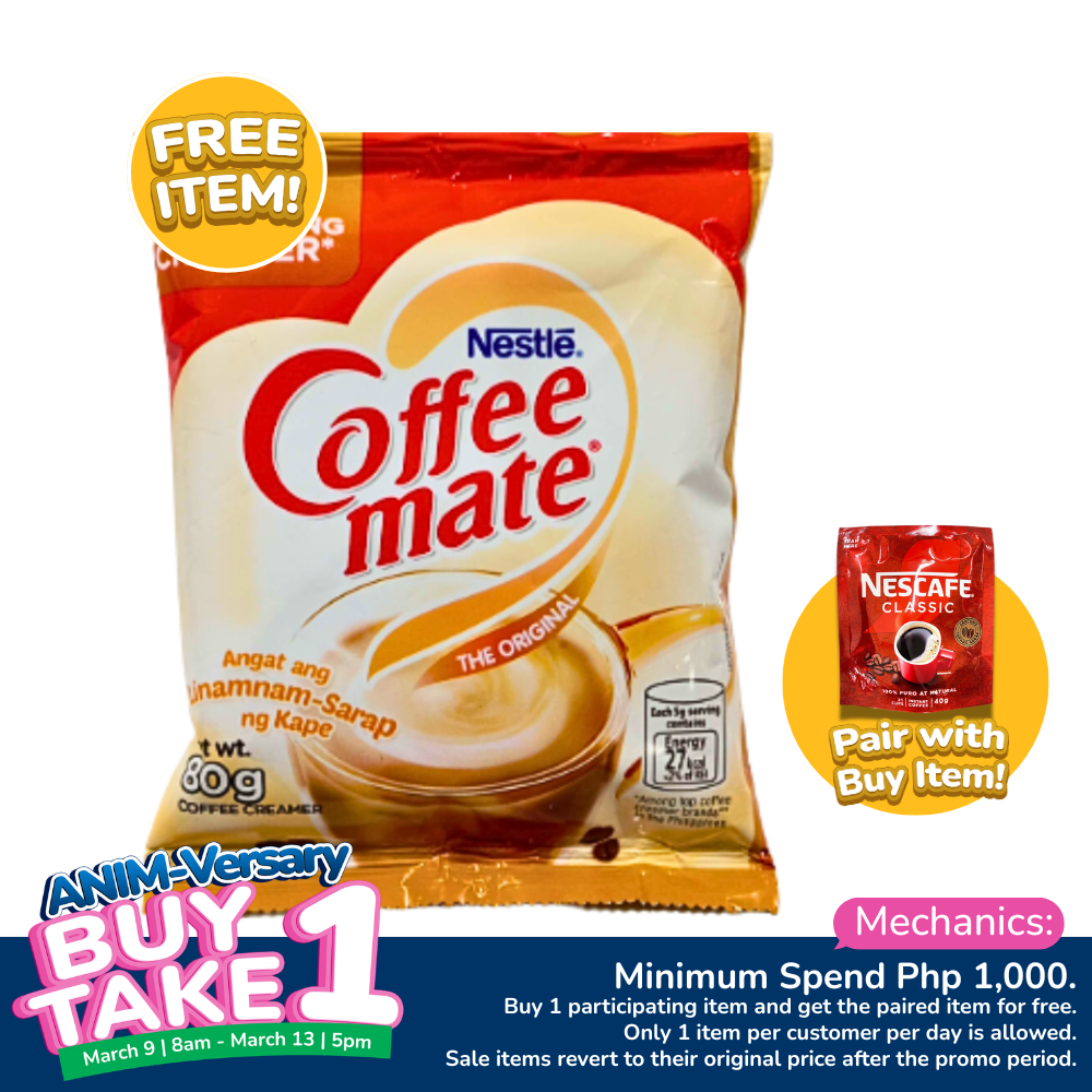 • Get this 1 pouch (80 grams) of Coffeemate Coffee Creamer for FREE when paired with the Buy item, following the mechanics below.
