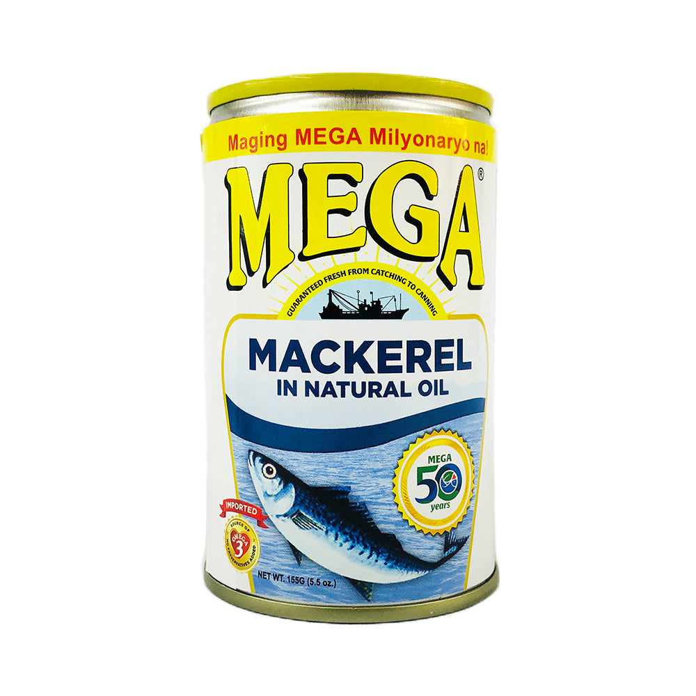- Sold per 1 can contain 155 grams of Mega Mackerel In Natural Oil.