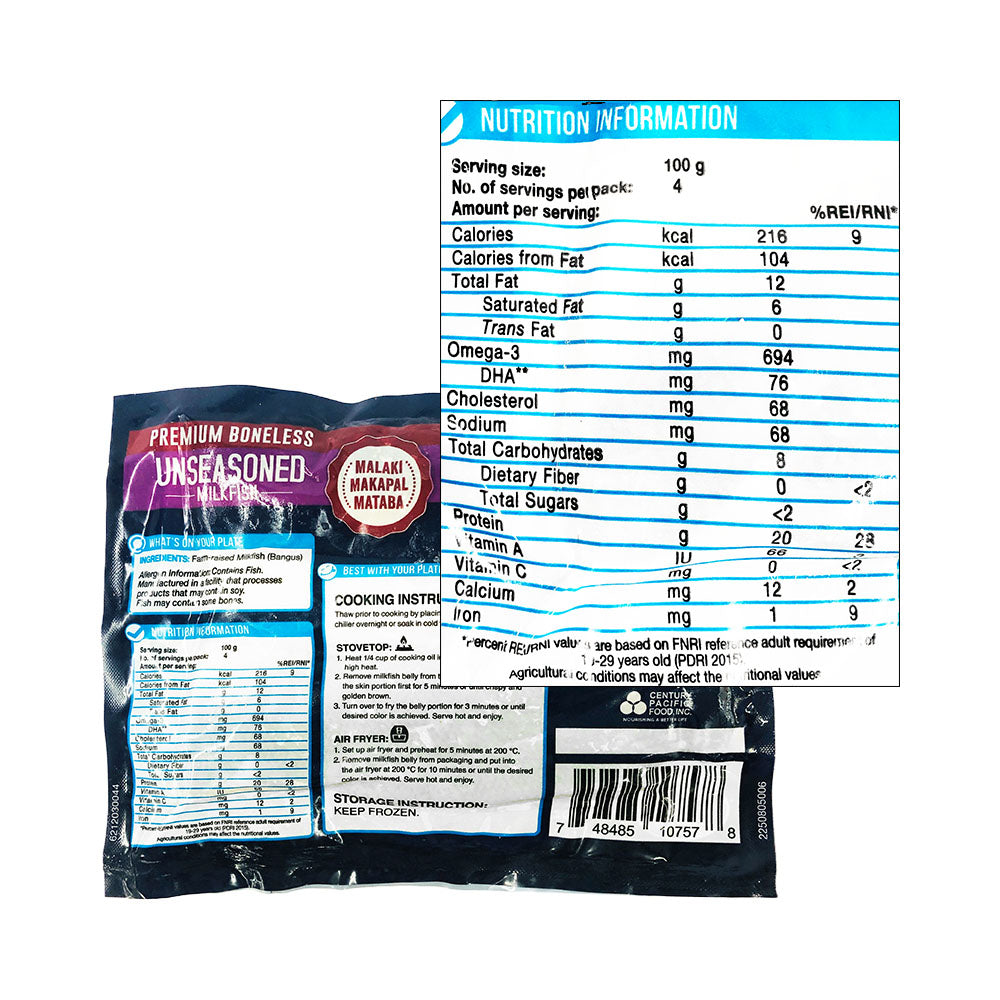 Century Premium Boneless Bangus Belly Unseasoned 400g