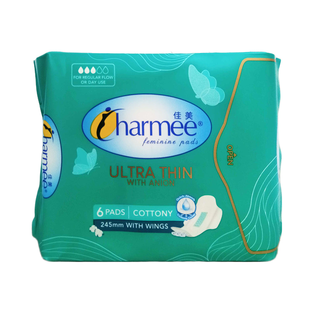 - Sold per 1 pack containing 6 cottony pads of Charmee Feminine Pads Ultra Thin With Anion With Wings