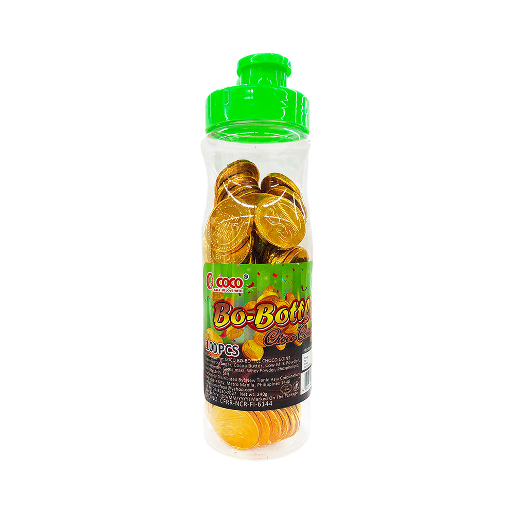 - Get this 1 bottle (240 grams) of Coco Bo Bottle Chocolate Coin.