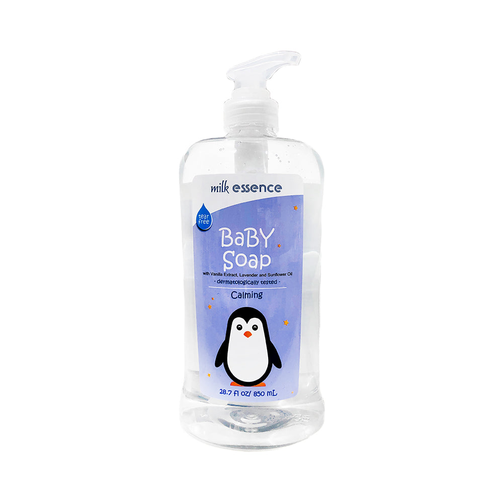 - Enjoy silk, talc-like after-feel skin with Milk Essence Calming Baby Soap.