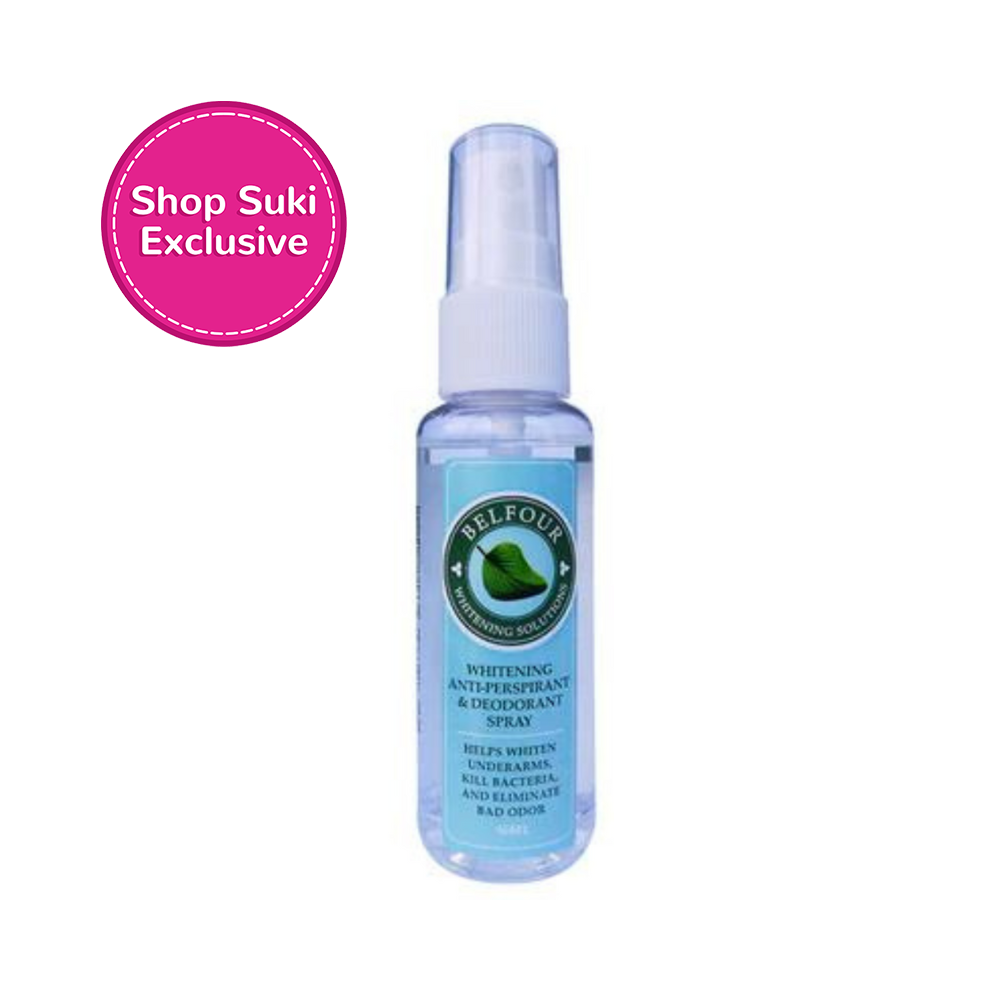 - Sold per spray bottle contains 50ml of Belfour Whitening Solution Anti-Perspirant Deodorant Spray 50ml.