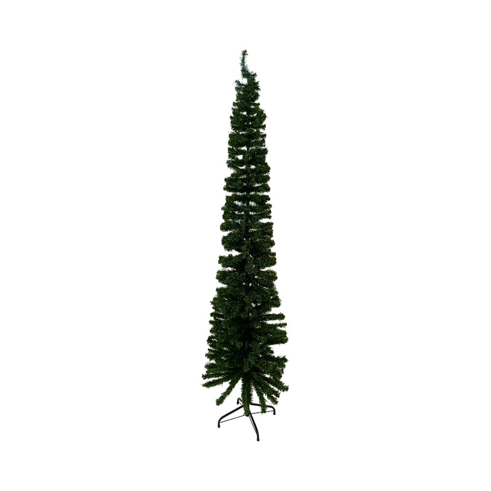 - Celebrate the season with the Shining East Slim Vinyl Christmas Tree With Metal Footing.