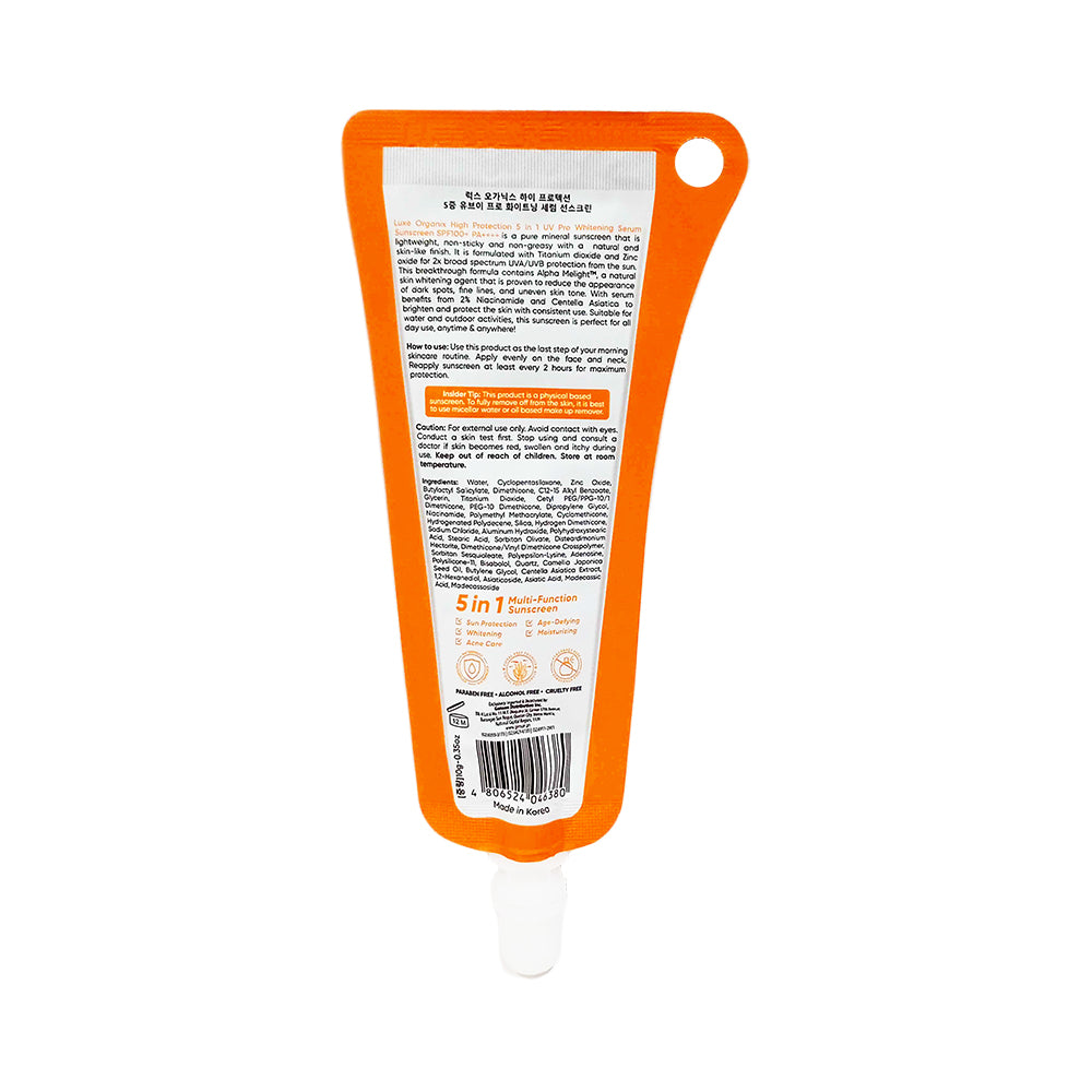 - Get this 1 piece (10ml) of Luxe Organix 5in1 UV Pro Whitening Serum Sunscreen SPF 47 PA+++.