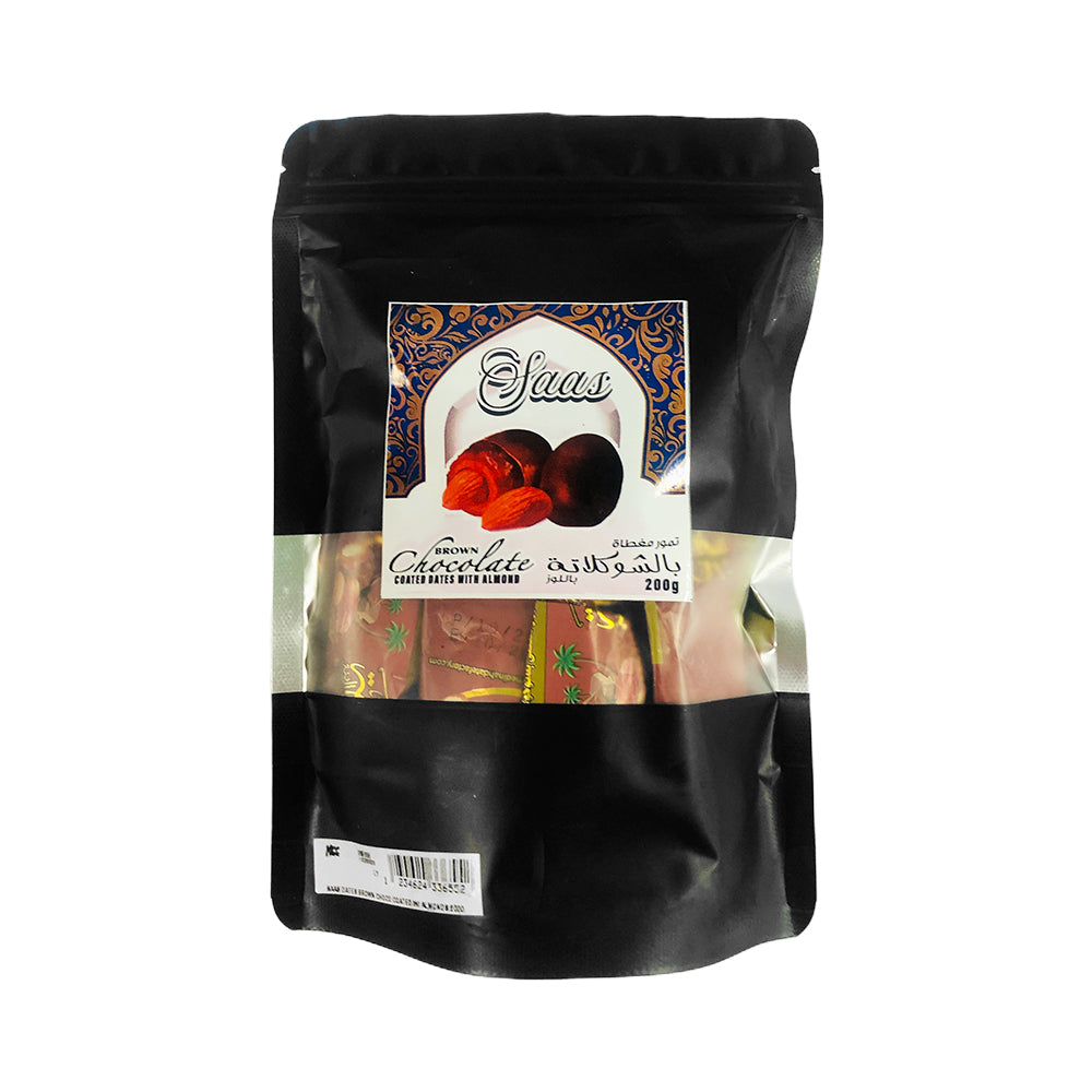 - This irresistible snack combines naturally sweet dates filled with crunchy almonds, all generously coated in rich brown chocolate.