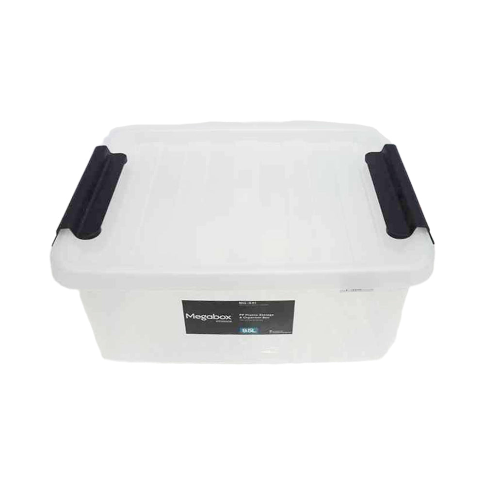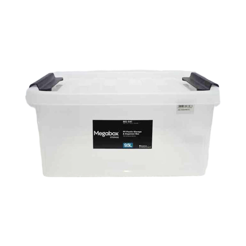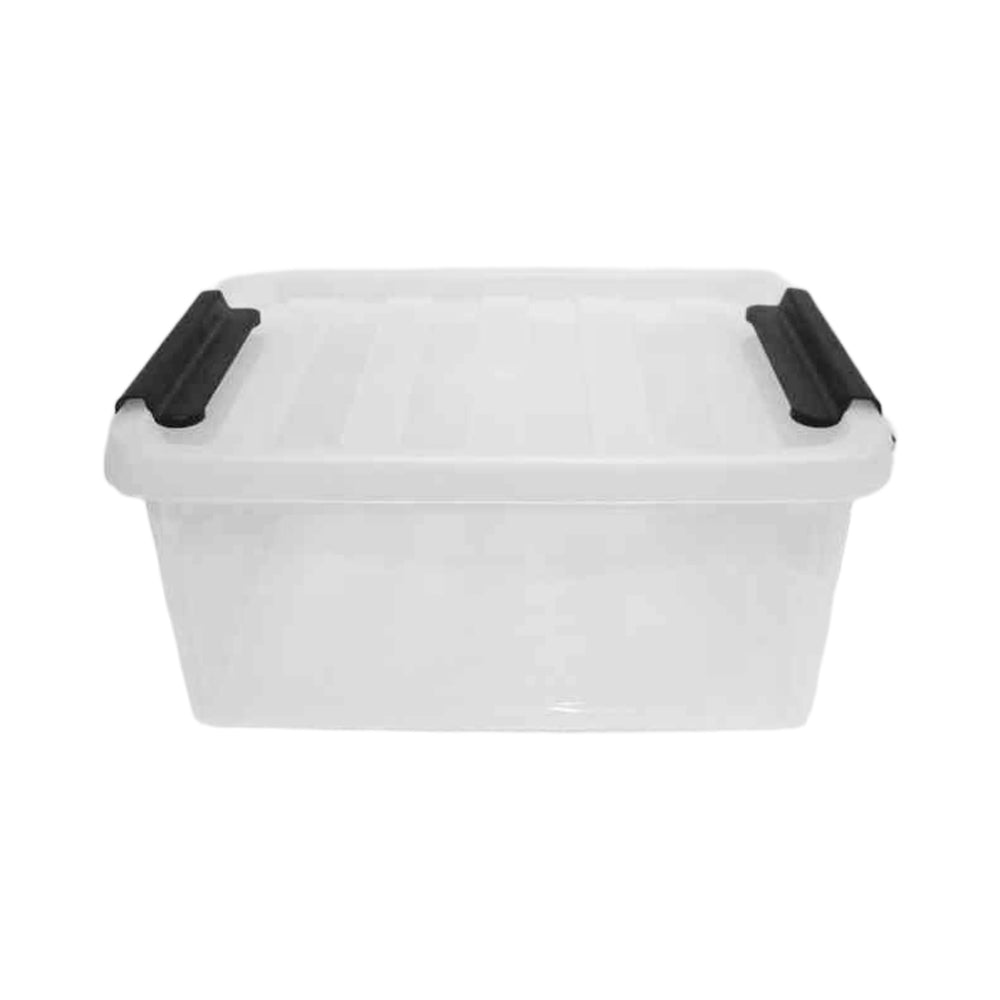 - Sturdy plastic storage bin with a latch keeps your contents safely secured inside.