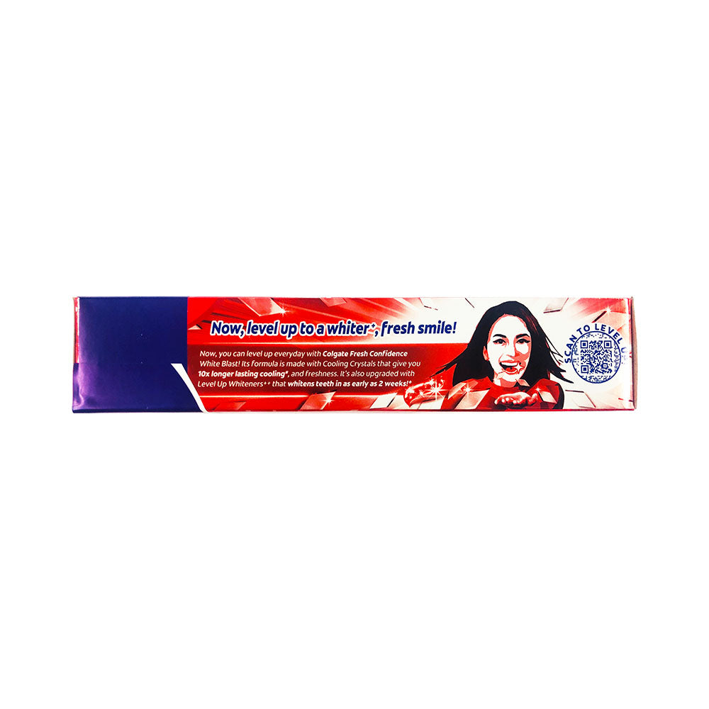 - Get these 2 tubes (150 grams each) of Colgate Fresh Confidence White Blast Spicy Fresh with free Optic White Purple 37g.
