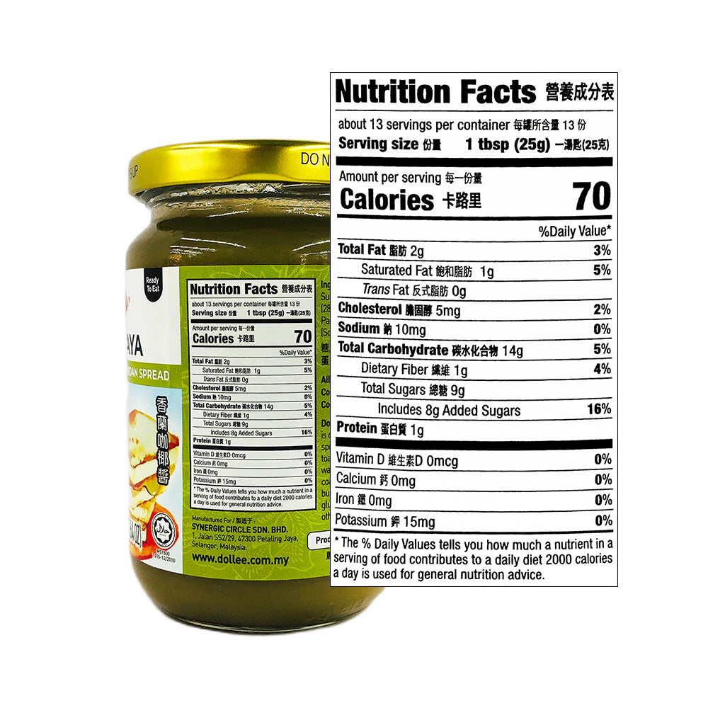 - Get this 1 jar (330 grams) of Dollee Kaya Coconut Spread.