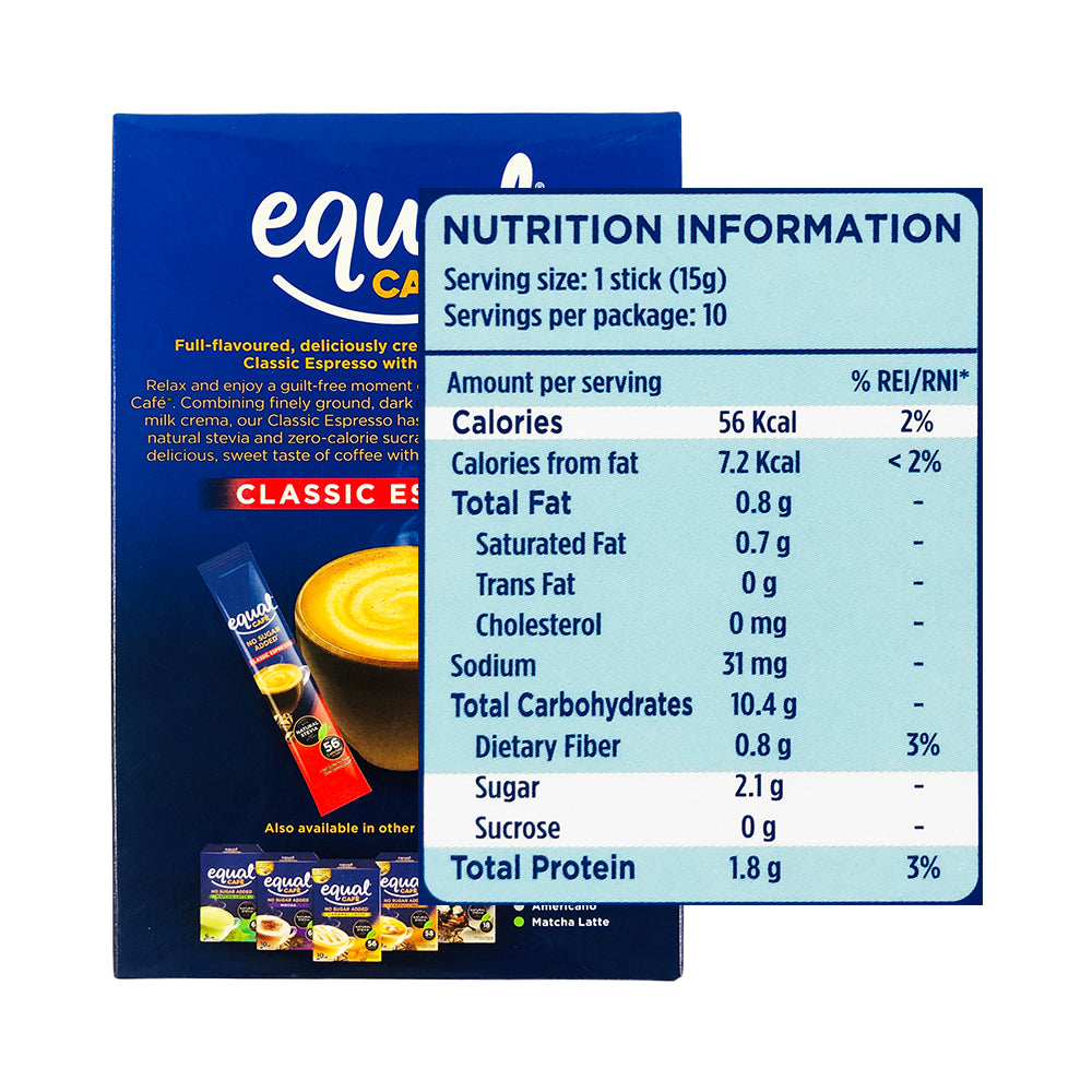 - Enjoy your coffee moments guilt-free with Equal Café with Natural Stevia Zero Sugar.