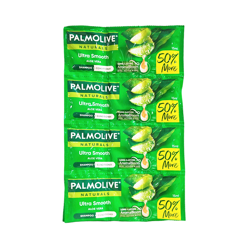 - Get these 12 sachets (15ml each) of Palmolive Naturals Shampoo And Conditioner Healthy And Smooth in 1 tie.