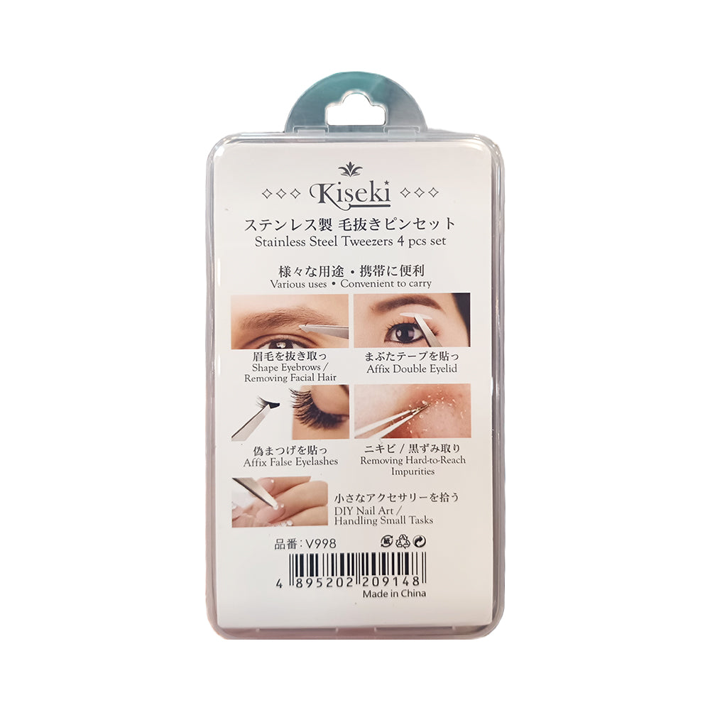 Kiseki Stainless Steel Tweezers 4pcs Set
