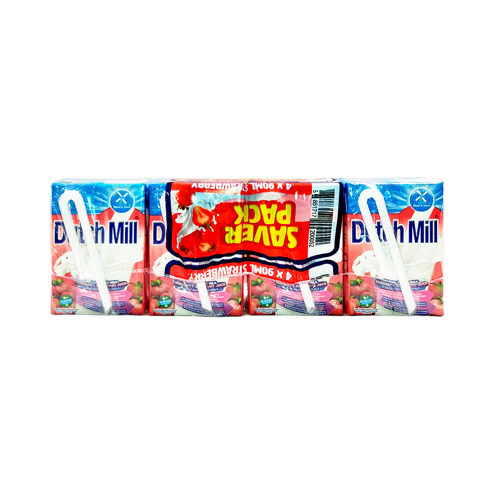- Get these 4 pieces (90ml each) of Dutch Mill Yoghurt Drink Strawberry in one pack.