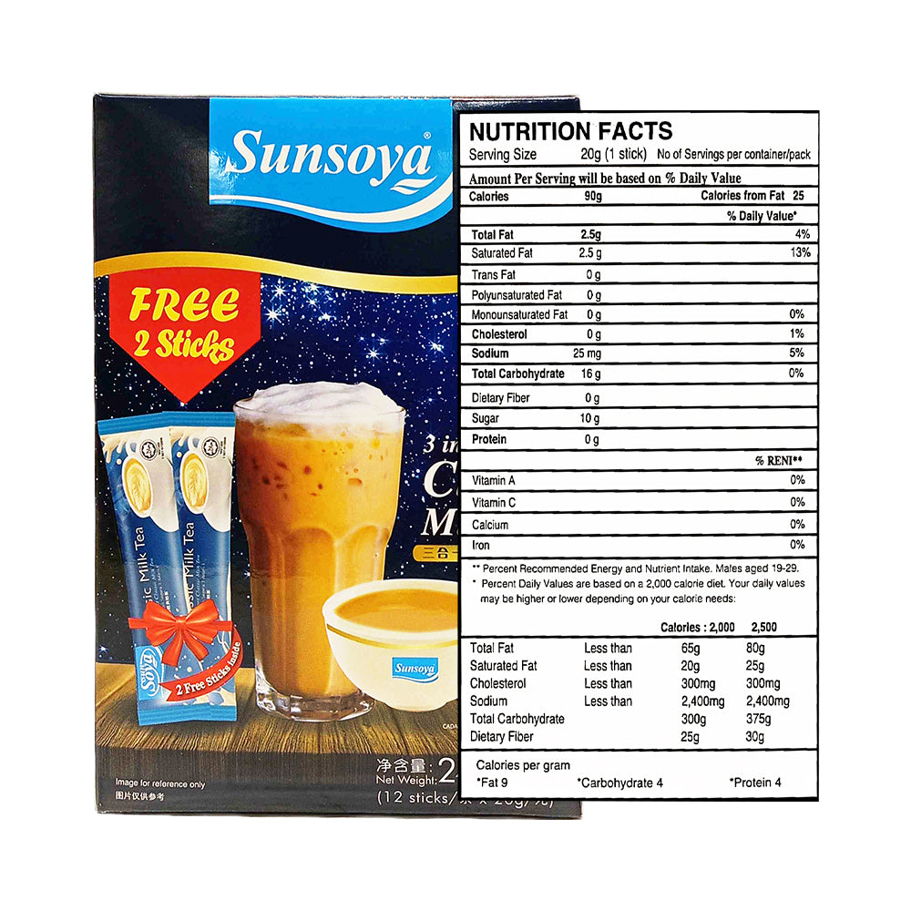 • Sold per box contains 10 pieces (20 grams each) of Sun Soya Milk Tea Classic.