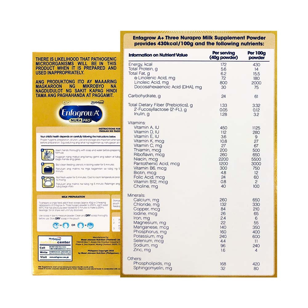 - Sold per 1 carton contains 1.2 kilograms of Enfagrow A+ Three Milk Supplement Vanilla.